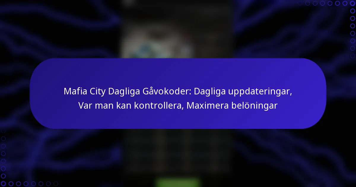 De aktuella Mafia City-gåvokoderna ger spelare olika belöningar, inklusive spelvaluta, exklusiva föremål och bonusar. Dessa koder kan förbättra din spelupplevelse genom att erbjuda värdefulla resurser som hjälper dig att avancera snabbare.